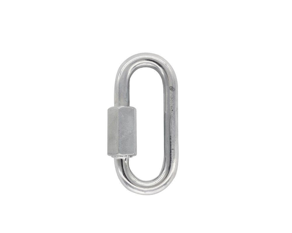 ARMBURY Quick Link Steel Carabiners have a zinc-plated finish which prevents rust from moist environments. The delta shaped carabiners are used to attach the harness for rope access or speleology. The oval shaped carabiners are used for quick draws, industrial safety and rescue.