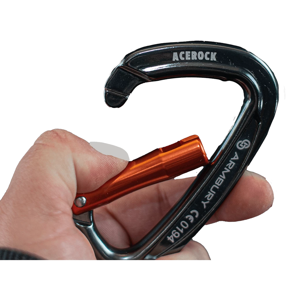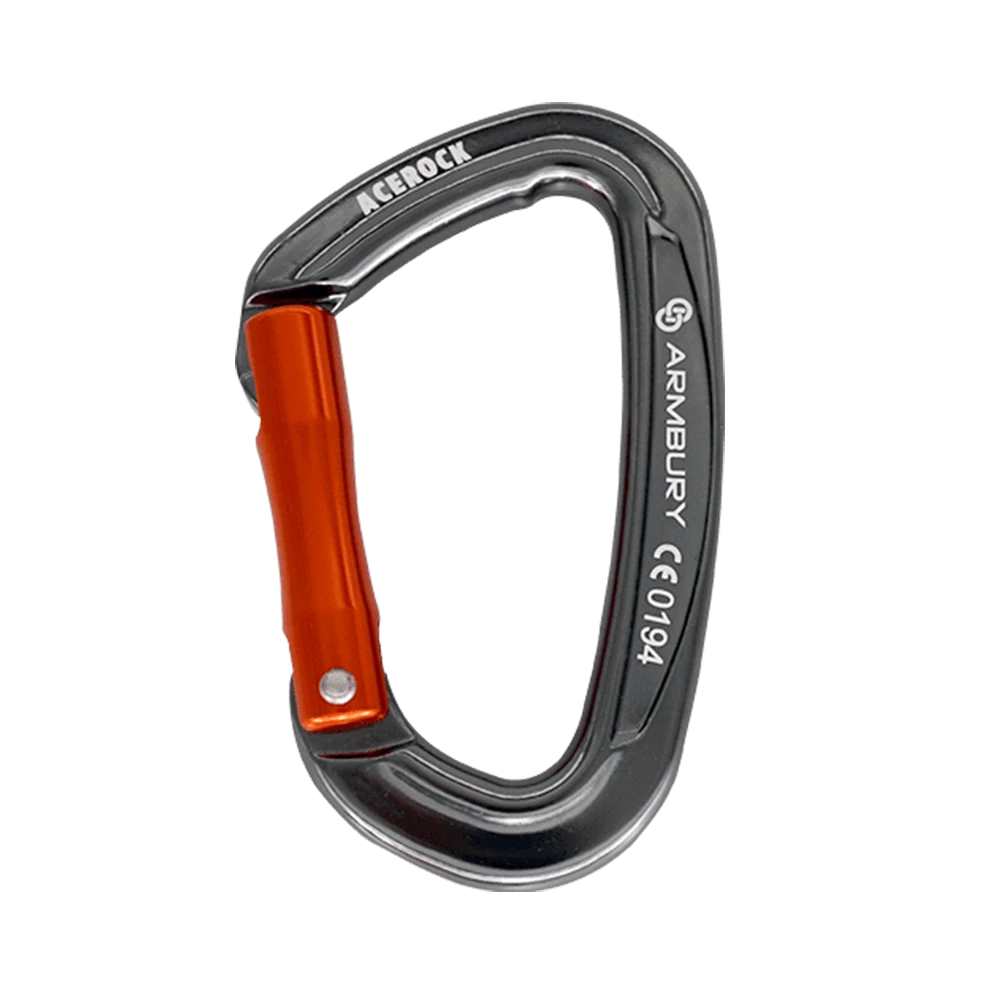 ARMBURY Acerock Carabiners are ergonomic and full-sized. They are constructed with the classic D-shape to ensure optimal load transfer which is ideal for sport and trade climbing. These carabiners are available with a screw gate, straight gate, bent gate, or a wire gate with a keylock nose for a wide opening to allow easier clipping.