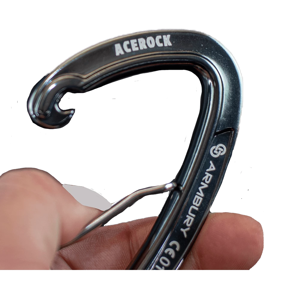 ARMBURY Acerock Carabiners are ergonomic and full-sized. They are constructed with the classic D-shape to ensure optimal load transfer which is ideal for sport and trade climbing. These carabiners are available with a screw gate, straight gate, bent gate, or a wire gate with a keylock nose for a wide opening to allow easier clipping.