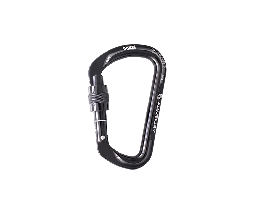 ARMBURY Dome Carabines are D-shaped and made of a light alloy with catch-free noses for smoother clipping and unclipping. The asymmetric shape significantly increases the strength making it ideal for belaying, hauling, and rescue maneuvers. These carabiners are available with a screw lock gate, twist-lock gate, or triple lock gate.