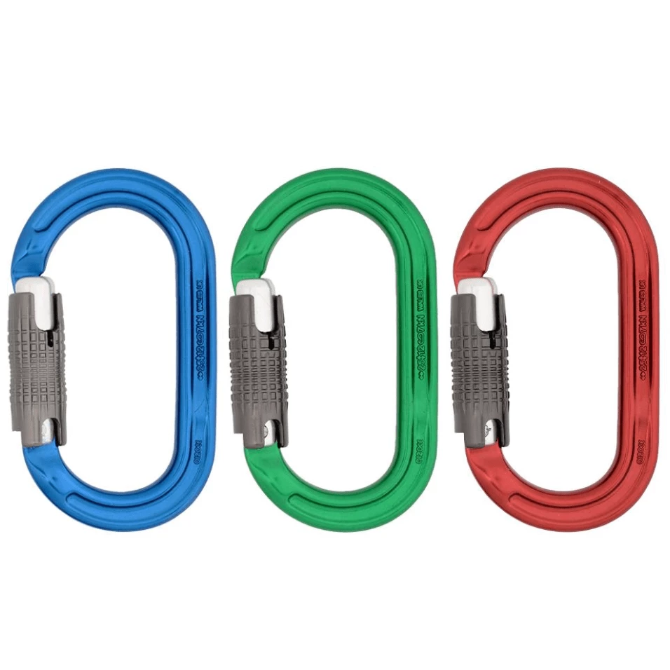 The Ultra O Locksafe, and Locksafe Captive Bar Carabiners have an auto-locking gate that requires three distinct actions to open providing additional safety in complex rigging arrangements, like running ropes or isolated anchor points.
