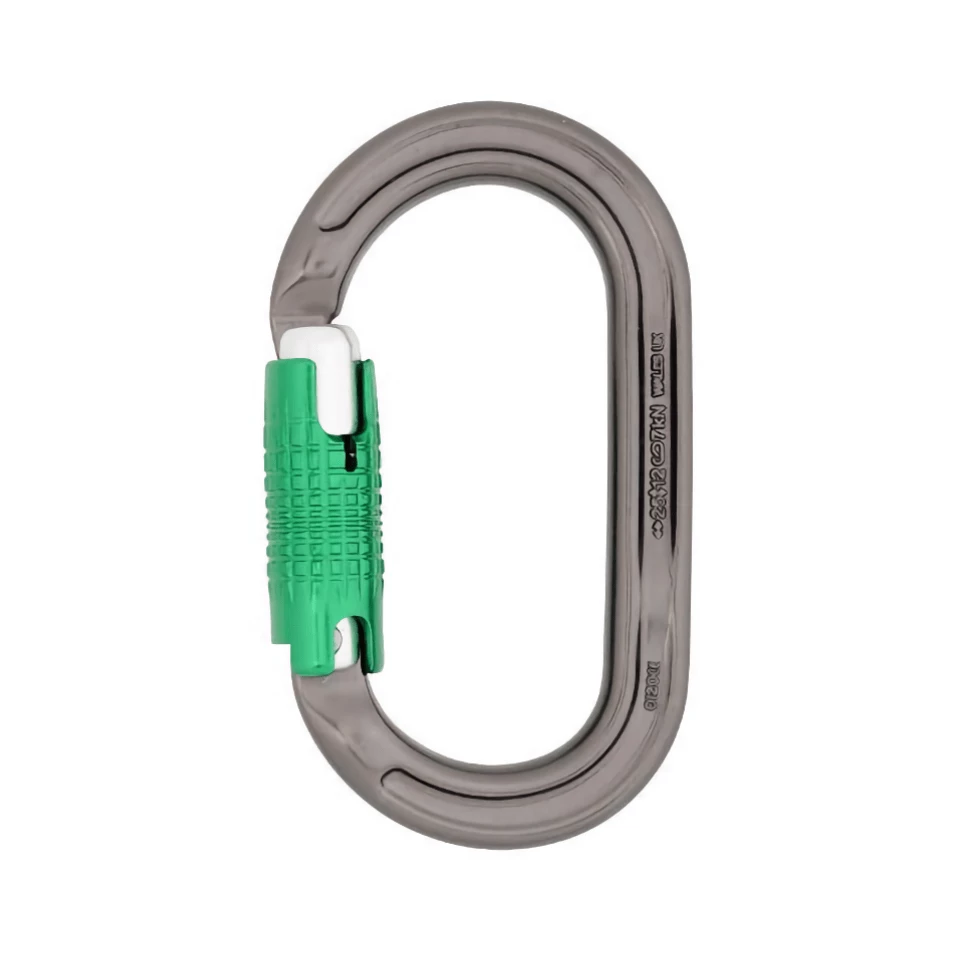 The Ultra O Durolock Carabiner has an auto-locking gate that requires four distinct operations to open. Force must be maintained throughout of the gate returns to be safe (locked).