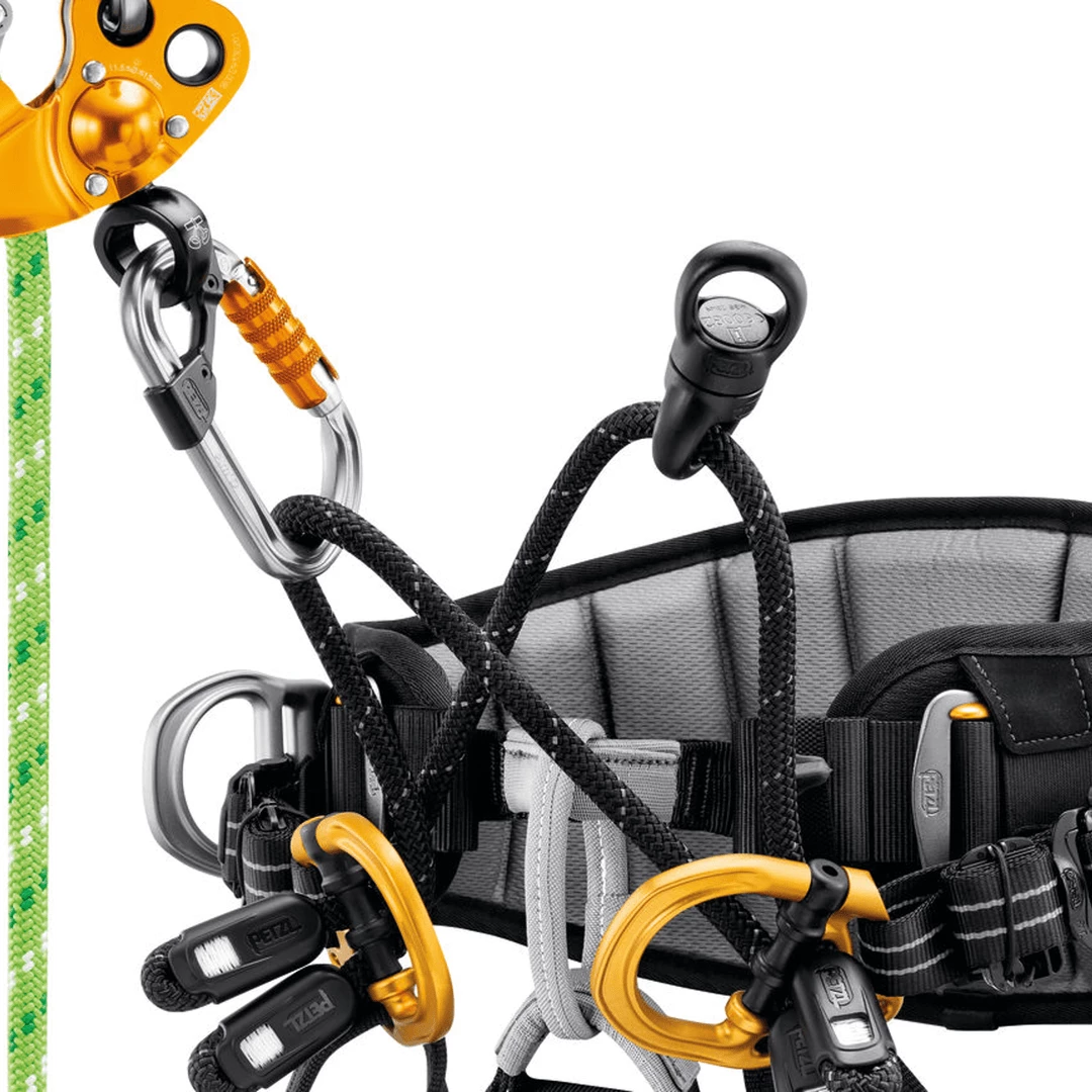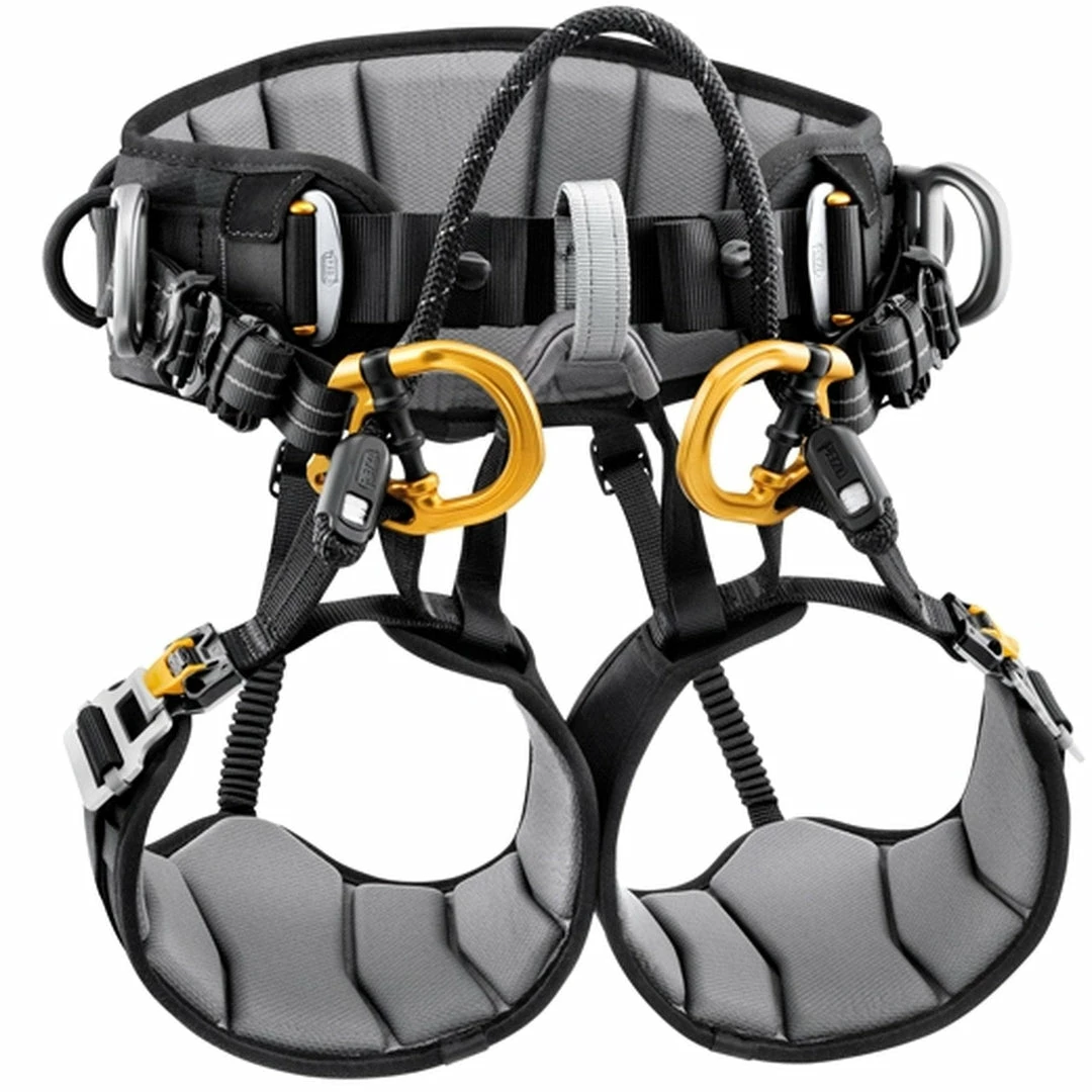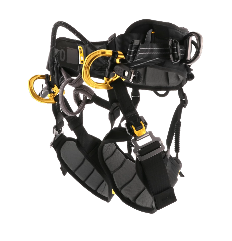 - Harness designed for using single-rope ascent techniques: ventral attachment point for installing a ZIGZAG or ZIGZAG PLUS mechanical Prusik with CHICANE and KNEE ASCENT accessories, and a rear buckle for installing a CROLL ventral rope clamp with SECUR shoulder straps.