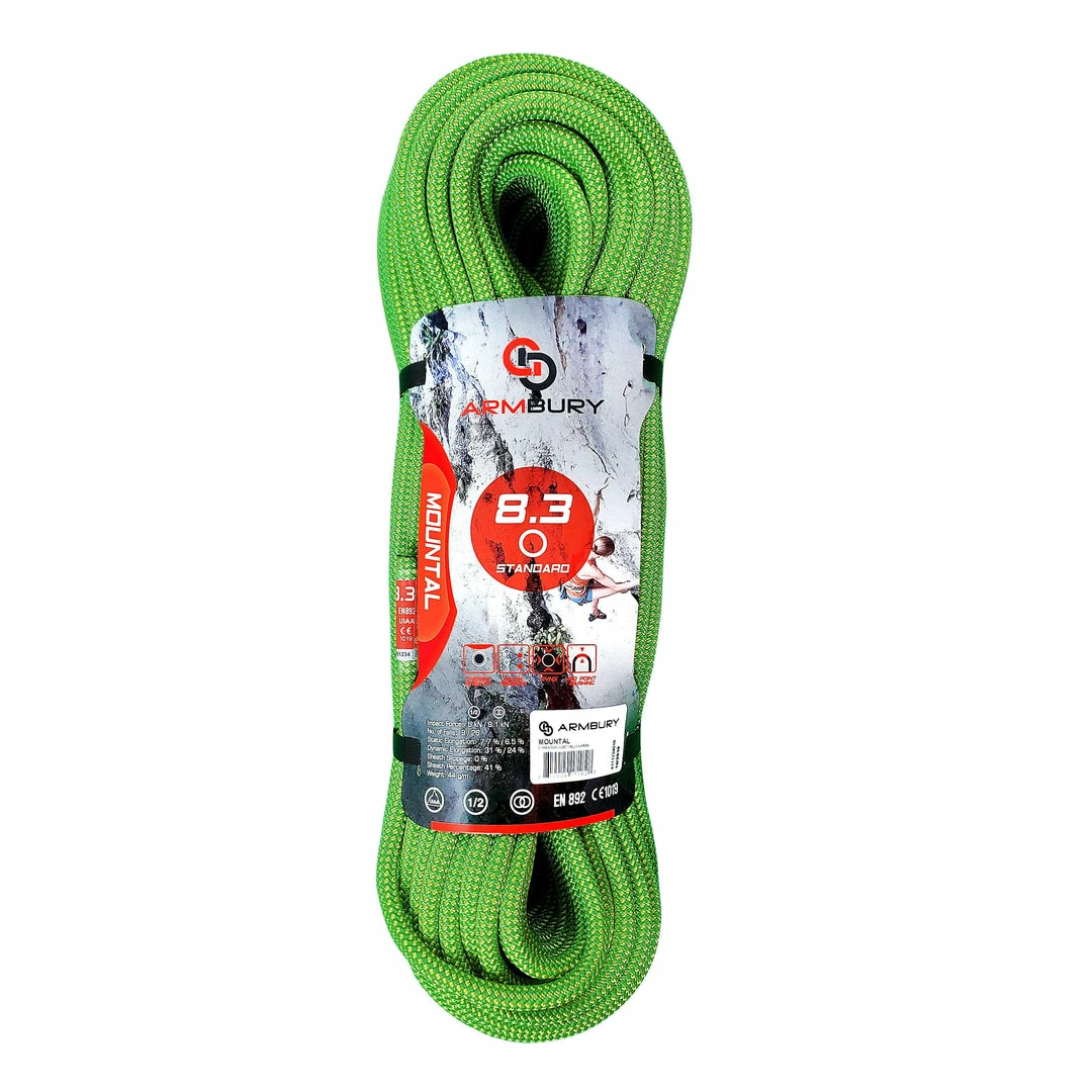 ARMBURY Dynamic Mountal Climbing Rope is a half-and-twin rope with great handling and knot ability. At 8.3mm it is the smallest climbing rope in the ARMBURY lineup. It is lightweight and has the Dry Pro waterproofing which is perfect for classic and ice climbing.