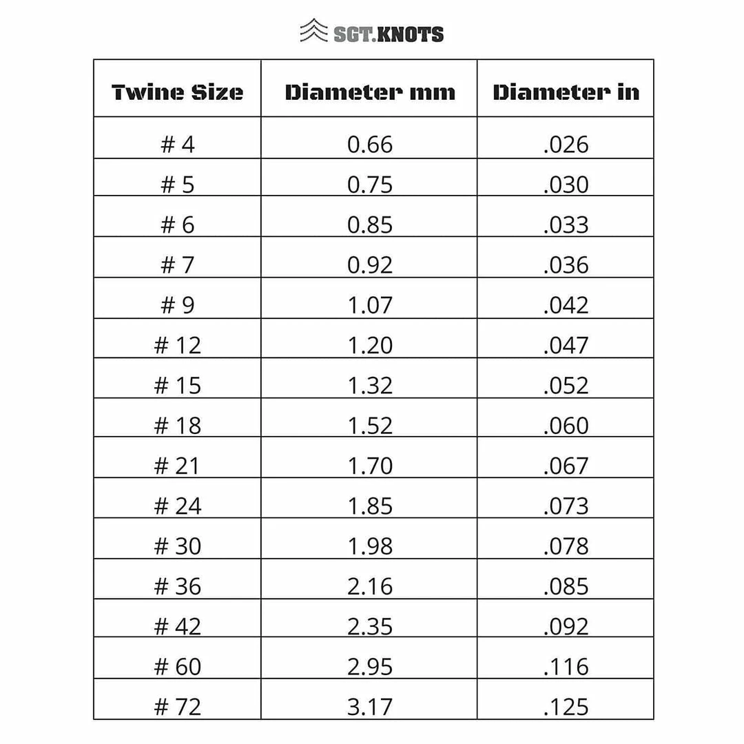 - Sizes, length/diameter per pound: #18/900ft/9.50lb, #24/675ft/9.00lb, #36/420ft/8.75lb, #48/320ft/8.50lb, and #60/250ft/8.50lb.