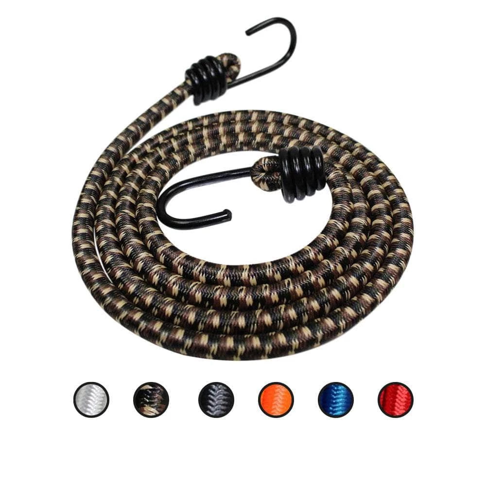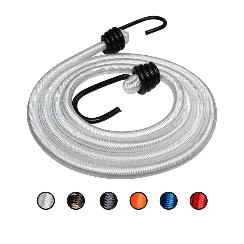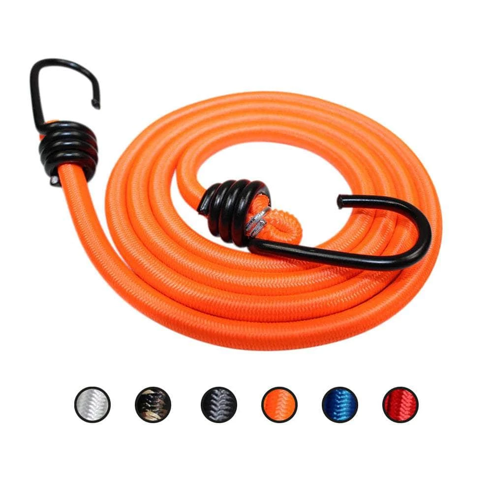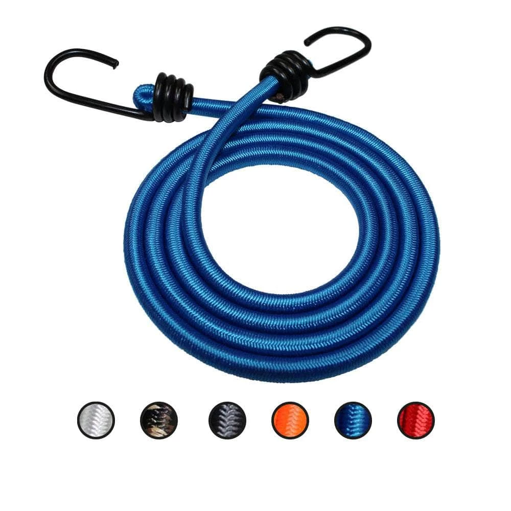 SGT KNOTS® Marine Grade Bungee Cord provides the durability and dependability that most shock cords on the market cannot deliver. The high grade Dacron Polyester sheath is highly resistant to UV rays, abrasion, and moisture – perfect for the type of high-friction movement in direct sunlight that wears out other bungees. Durable metal hooks allow easy fastening to roof racks, truck beds, or back on the cord itself if you need to make a quick and easy gear bundle. Our polydac bungee cord comes in a wide range of colors and lengths, making it a versatile option for any situation.