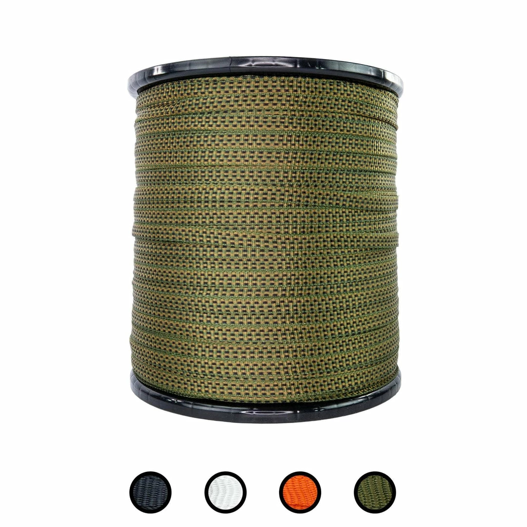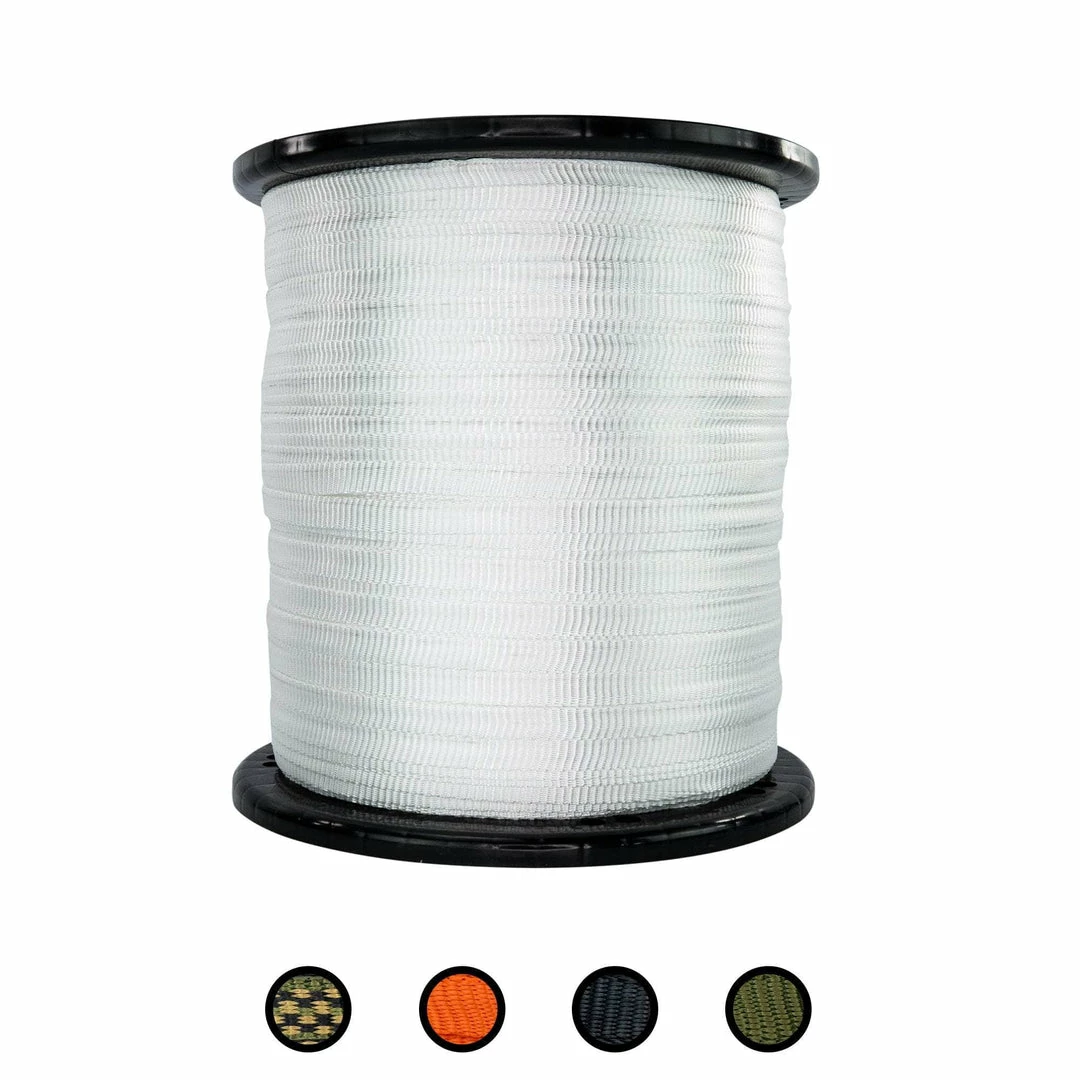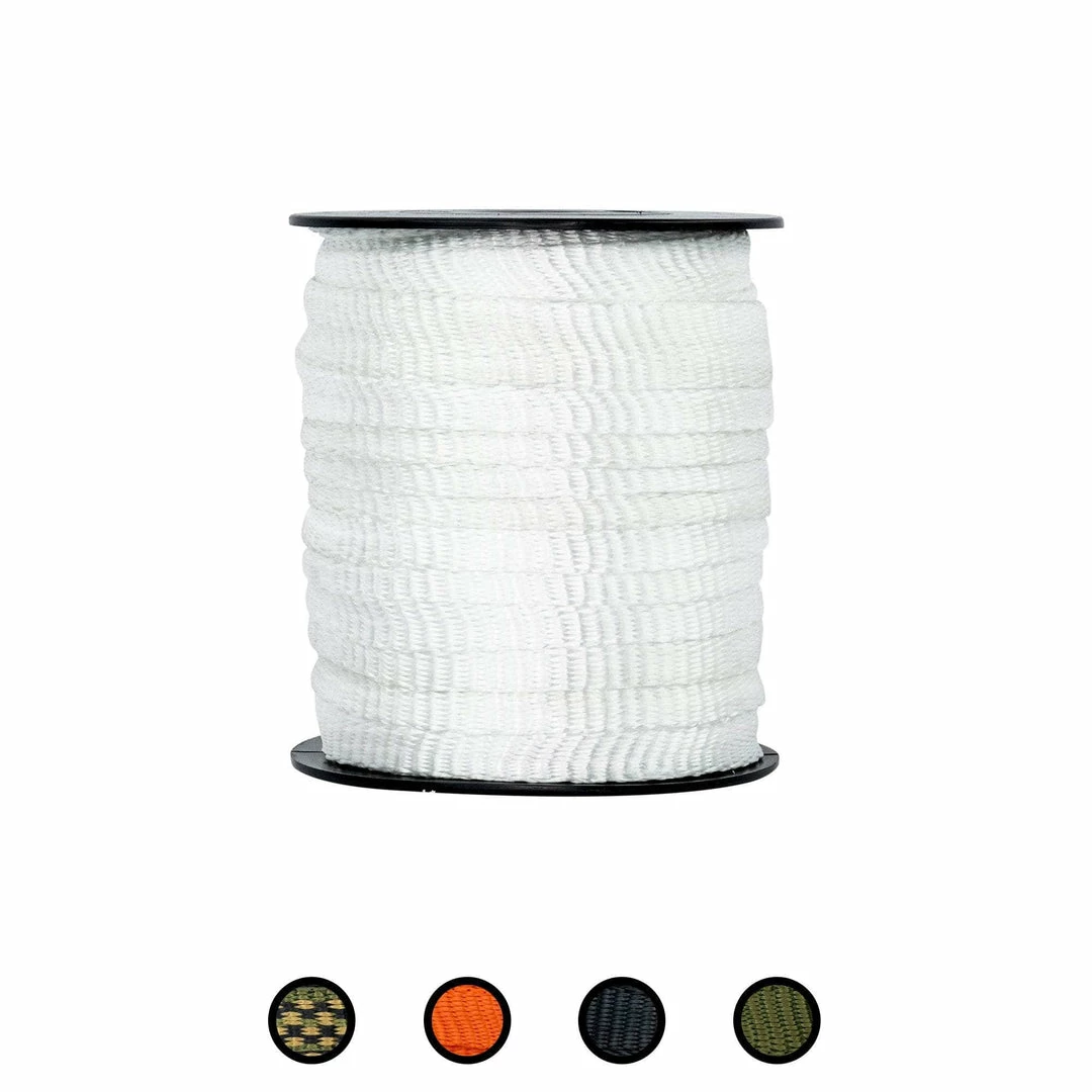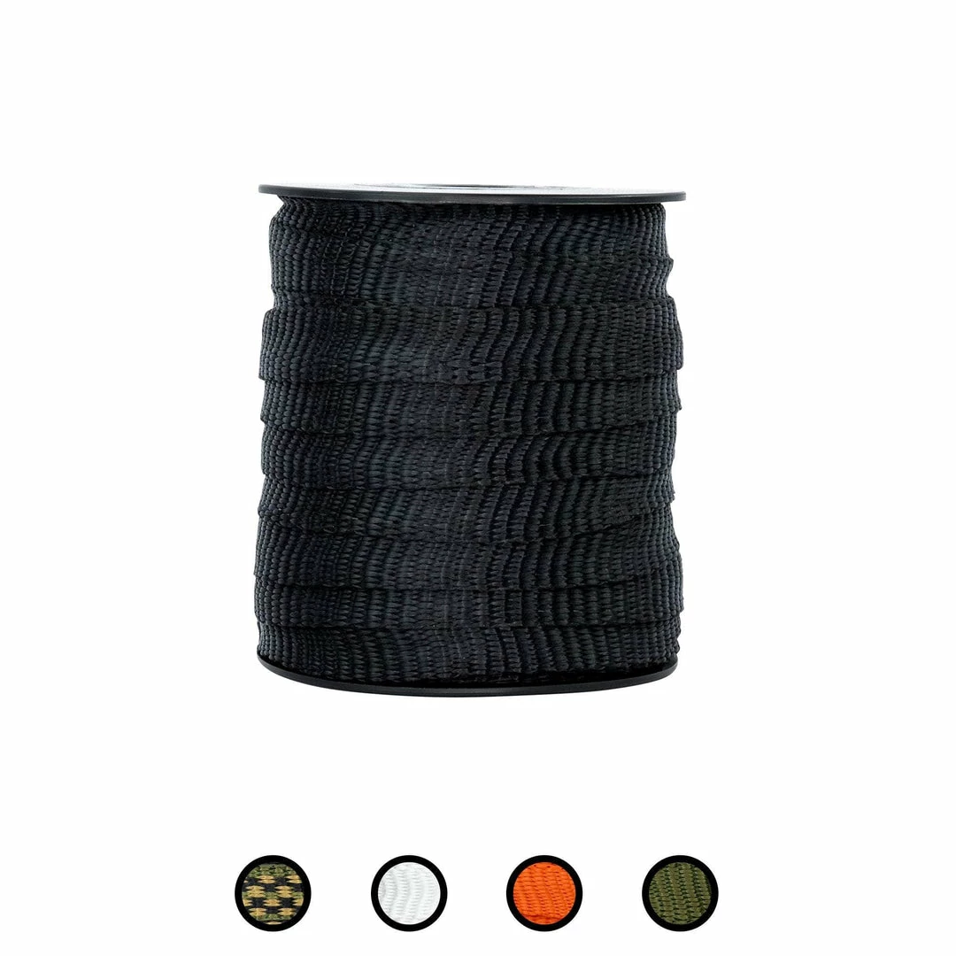 Our polyester webbing flat rope combines the strength of a heavy-duty rope with the even pressure of standard flat webbing. Perfect for indoor and outdoor applications. From cargo straps, to marine rope, to arborists harnesses, use this pull tape for virtually anything.  The tightly woven polyester fibers are naturally resistant to moisture, sunlight, oils, chemicals, and abrasions. Our flat rope is ideal for all weather conditions, rain or shine.