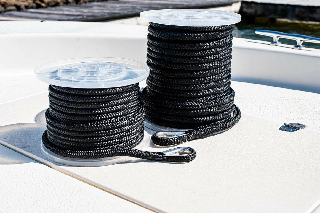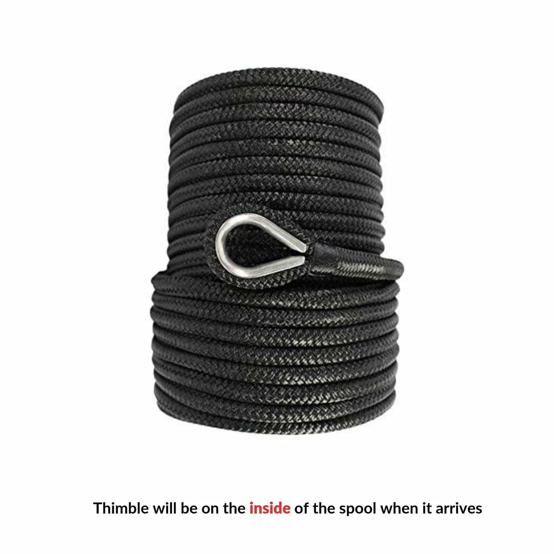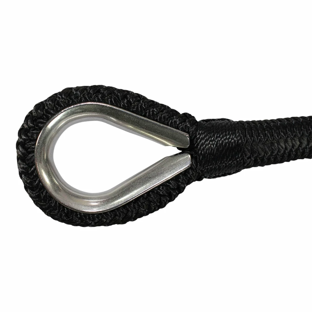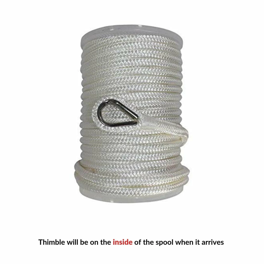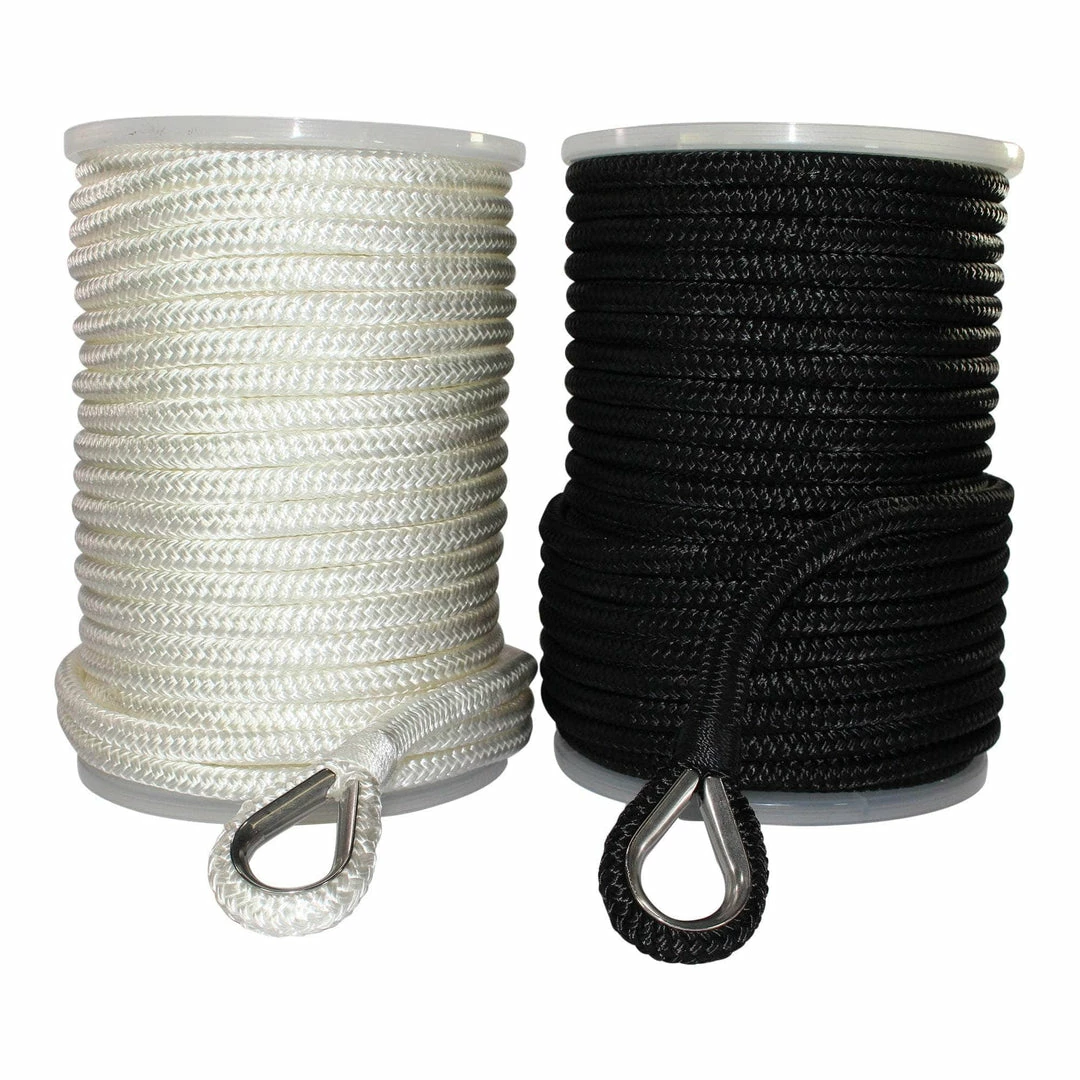 Double Braided Nylon Anchor Line is a professional grade anchoring line for yachts, fishing boats, speed boats, and large vessels. Made with top quality nylon fibers and expert craftsmanship. Guaranteed to last under heavy, everyday use. Our high grade nylon fibers are resistant to moisture, mold, UV degradation, and abrasion. Nylon provides ample shock absorption in cases of rough waters and shifting loads. A convenient, sewn-in 316 stainless steel thimble makes fastening easy and secure.