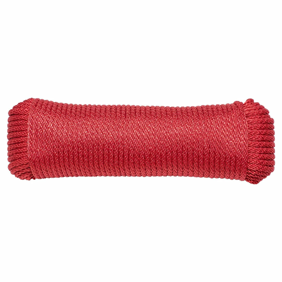 Made from 100% nylon with a solid braid for minimal stretching and maximum strength, this rope will also serve you well for any outdoor use. Tent lines and other camping uses, tie-downs for cargo loads on your car or pickup, and a variety of uses around your farm or ranch can all be handled with this low-stretch, knot-retaining nylon rope. Take the whole spool with you for easy storage and deployment or snip off the length of nylon you need for the job.