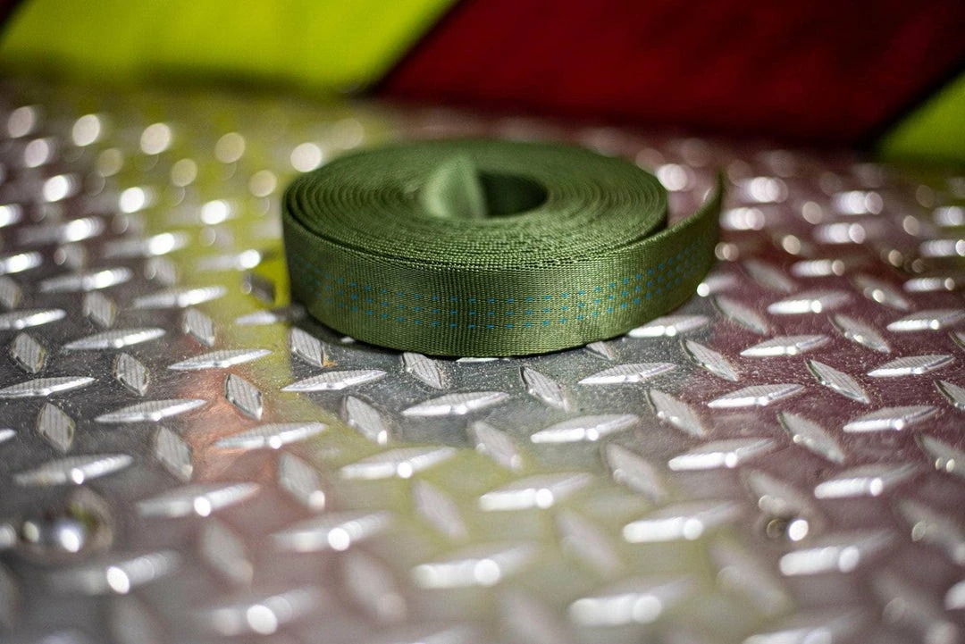 Available in widths of 1 inch (1½) and pre-cut lengths of 5 yards, 10 yards, 20 yards, 30 yards, and 100 yards. 100 yard tensile strength is 4,046 pounds. CE and UIAA Certified!
